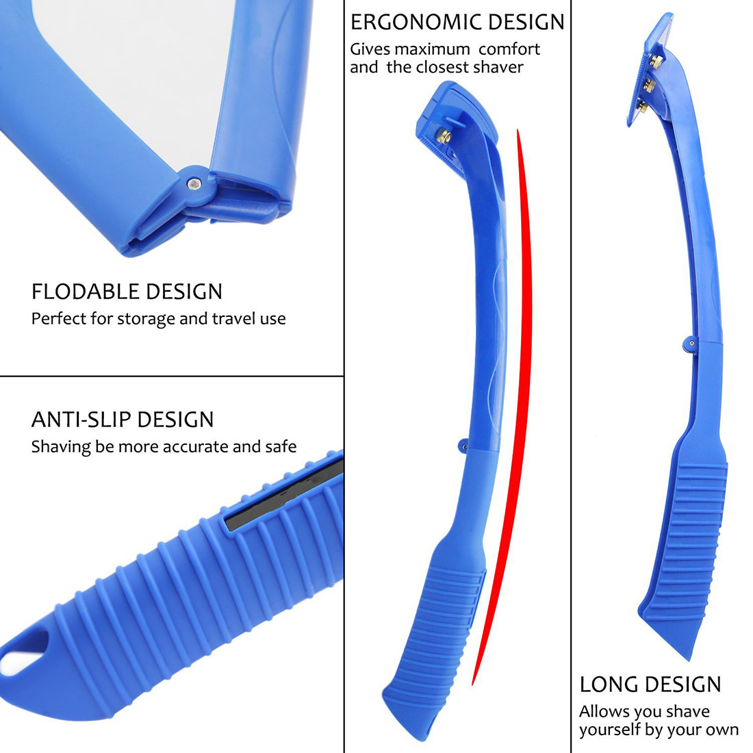 Model NO.:TW-BK01 Material:ABS Color:black / blue Package:OPP bag Bag size:25.5x14.1x7.1cm QTY:100PCS/CTN Carton size:63*20*44CM/19.5KGS Set obtains: 1 back shaver 1 box double edge blades(5pcs) English instruction card