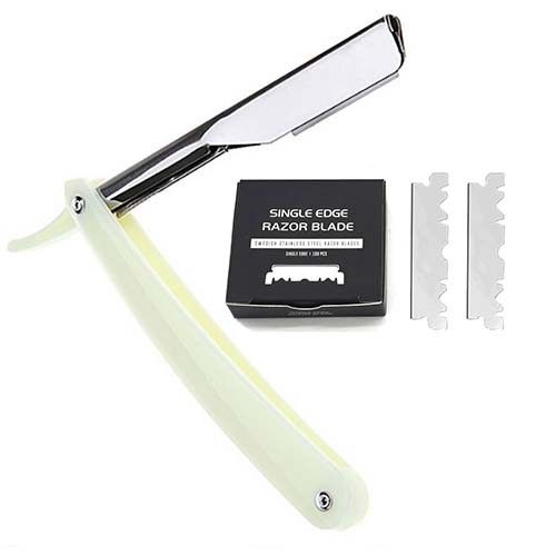 Straight Razor Stainless Steel with 100 blades Single Edge Blade Barber Shaving Razor for Men Professional Cut Throat Razors Traditional Reusable Razor for Moustache, Beard Shaper & Trim/Cut Side Lines